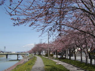 ■胴腹の滝■(2005/4/30) 久しぶりに妻と娘とドライブ。 八幡町から遊佐町とひとまわり。 途中鳥海公園と宮山坂公園の桜を見学。 どちらも少し終わり気味でした。 写真は湧き水のおいしい胴腹の滝。 殺菌されてませんの看板がありました。 何か変じゃありませんか? 下の写真はすぐ近所の新井田川の写真。 満開ですねぇ〜 |