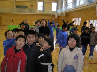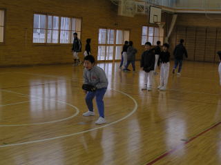 ■初練習は全員集合■(2007/1/7) 1月だというのに、まだ雪がありませんね。 そんなにびりびり寒いわけでもありません。 今日は一日雨でしたが、 初練習へは全員参加でした。 風邪をひいている人も一人もいなくて、 さっそくストレッチ体操。 そして軟らかいボールを使った捕球練習。 C球を使ってのゴロとフライの捕球練習。 紙ボールを使ってのバッティング練習と、 短い時間ながら充実した練習内容でした。 途中、昨年体力測定のできなかった、 菊池翔・本間智穂・本多健資が立ち幅跳び等実施。 本間智穂が2mにも達しようかという大ジャンプ。 みんなびっくりしていました。 昨年暮れ沖縄へ行った本間智穂から、 団員と指導員へお土産をいただきました。 おいしいお土産ありがとう。 来週の日曜も午前9時から練習です。 風邪などひかないようにうがい・手洗い忘れないようにね。 |
