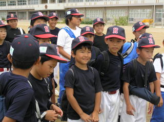 ■さわやかな練習でした■(2007/9/29) 先週に引き続き菊池監督不在の練習でした。 3年生は広瀬父、井上父、丸藤父にお任せしました。 6年生がだいぶ復調してきました。 守備練習では、 佐藤周がピッチャーで高橋快がキャッチャーです。 鈴木吉栄がサードで安定しています。 どうにか6年生大会に間に合ったようですね。 バッティングもようやく鋭い当たりがでてきました。 高橋快がセンターへライナーのヒットを打っています。 佐藤周も当たってきました。 三振はほとんど無くなってきました。 6年生大会は明日ですが、 これまでで一番良い仕上がりになりました。 明日の試合は本当に楽しみです。 十坂チームは浜田と同じくらいのチーム力です。 どんな試合になるかは、 どちらのチームのがんばりが強いかで決まります。 今年最後の大会です。 思い切り自分の持てるちからを出し切って、 がんばってみましょう。 スタッフはひたすら応援に徹します。 |